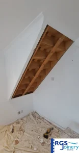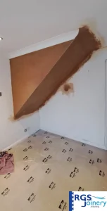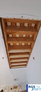 Doing it properly, we sorted it once and for all. We also added some new power sockets as part of the job, and now it’s all ready for painting.