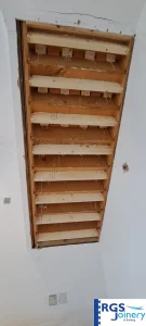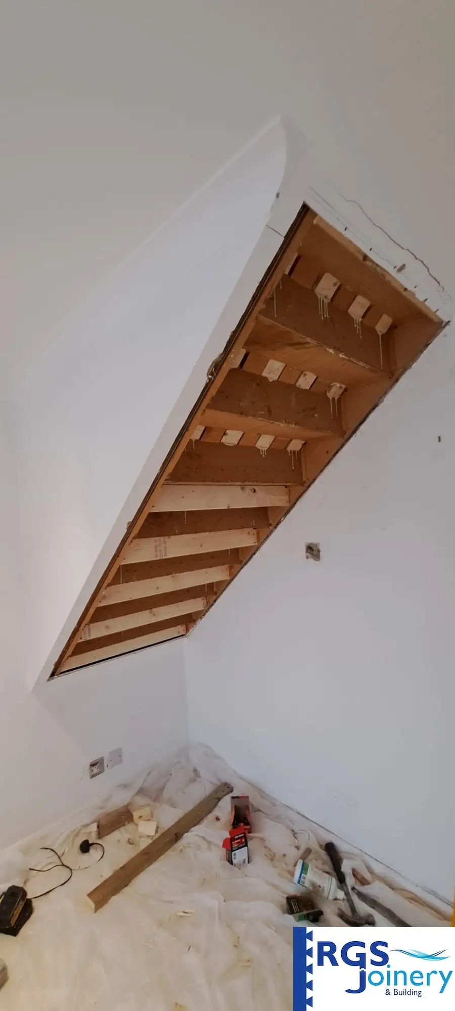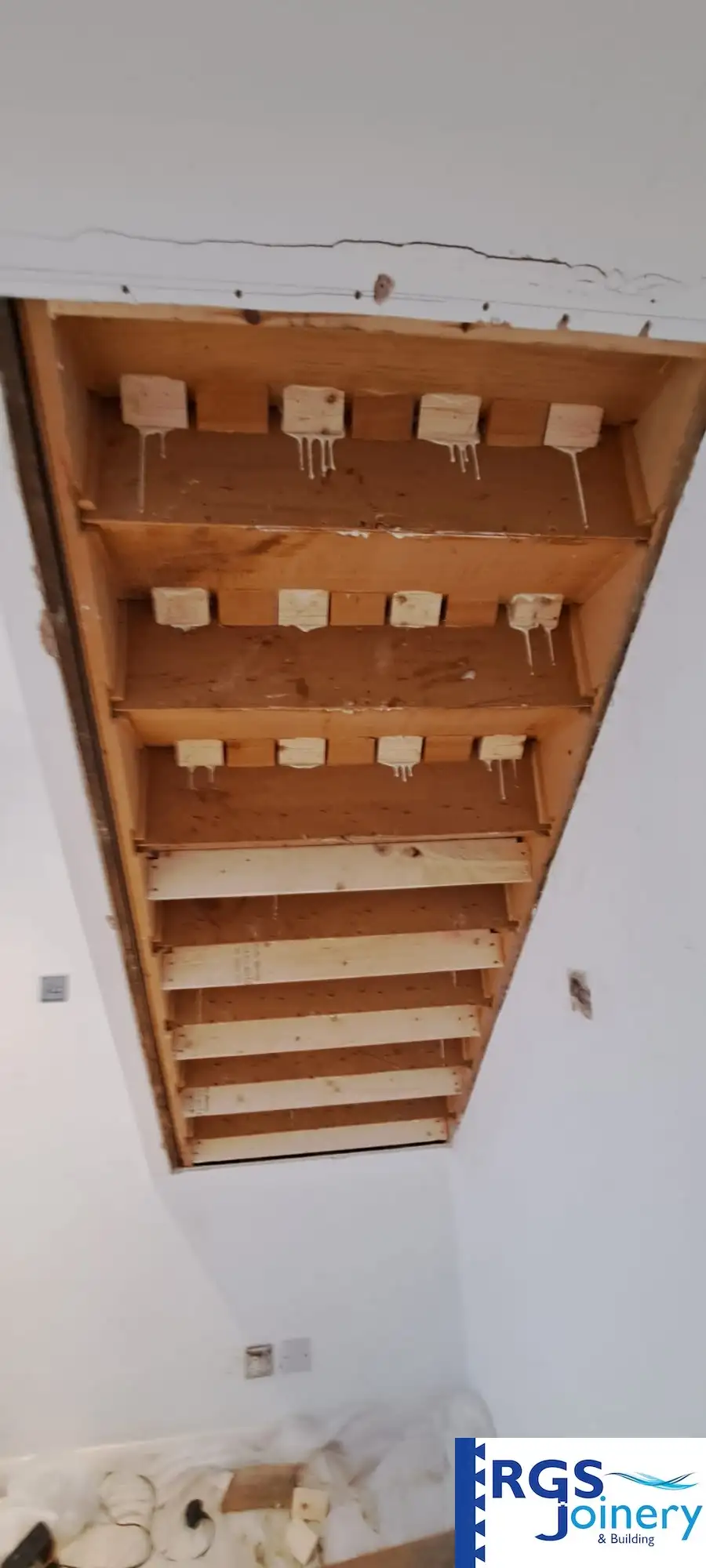 We took a different approach. We accessed the staircase from underneath on the lounge side and carried out a full repair - cutting, gluing and screwing new wedges into place to eliminate the movement causing the creaks.